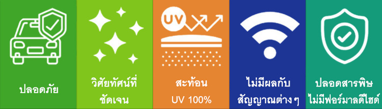 ด้วยความสามารถในการป้องกันรังสีอัลตร้าไวโอเลต ได้ 100% จึงสามารถรักษาวัสดุตกแต่งภายในและเฟอร์นิเจอร์ไม่ให้ซีดจาง หรือแห้งกรอบจากการถูกแดดส่องเป็นเวลานาน